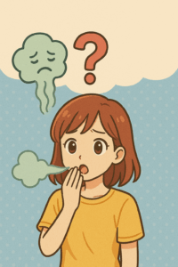 朝起きたときや空腹時など、一時的に生じる自然な口臭。特別な治療は必要なく、歯磨きや水分補給で改善するケースが多いです。